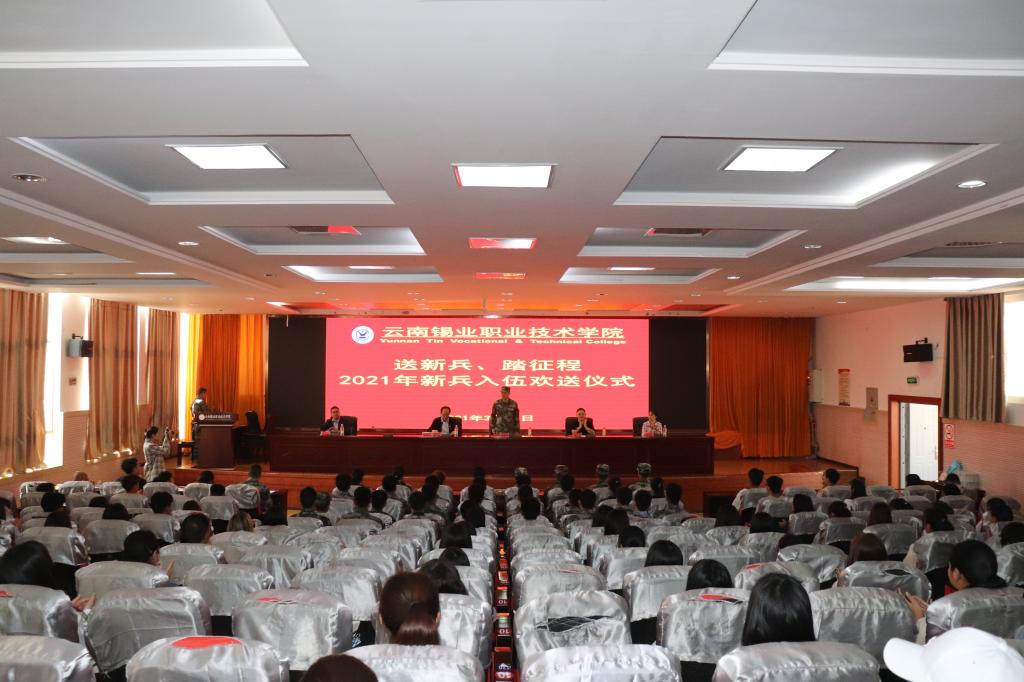 3月18日,学院在3号教学楼508报告厅举行新兵入伍欢送仪式。个旧市武装部政委杨伟坤致辞,学院党委书记张鹏主持仪式,院长李蕾致欢送辞,学院相关部门参加仪式。