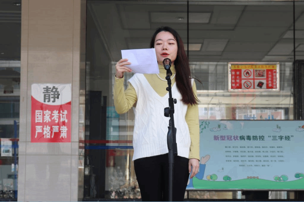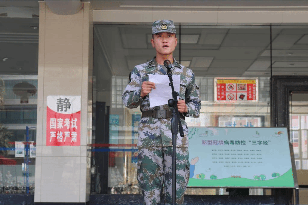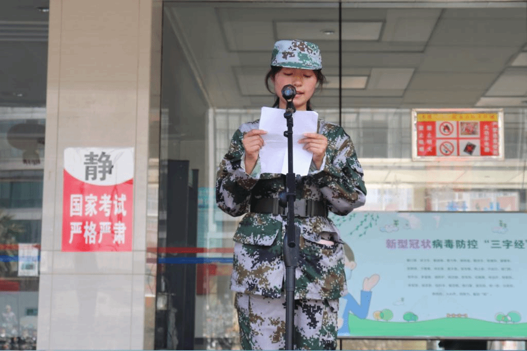 新生代表吕永昂,教师代表吴妍娇,军训教官代表杨忠龙先后发言。