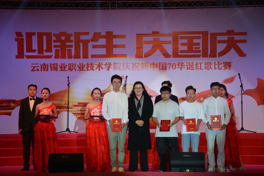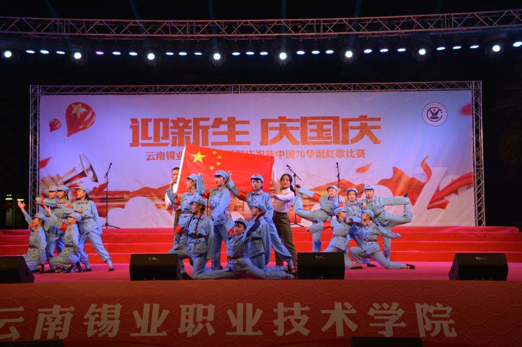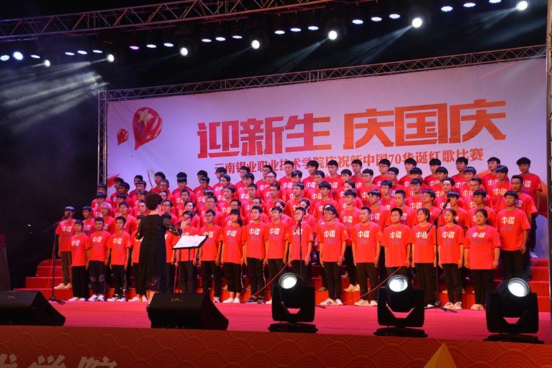 9月27日晚,职业技术学院“迎新生 庆国庆”庆祝新中国七十华诞红歌比赛文艺晚会在学院图书馆前广场隆重开幕,共同回顾70年来新中国取得的辉煌成就。1000余名师生在习近平新时代中国特色社会主义的伟大号角中唱响心中的歌,向祖国告白,向新中国成立70周年献礼。控股公司党委常委、党委副书记姚家立、党委常委、组织人力资源部部长吴君、控股公司工会副主席佴亚阳、交通银行红河分行党委书记、行长马俊龙、个旧市新华书店经理龙静、个旧市乾韵艺术培训学校校长、个旧市古筝协会会长郭平、云南省艺术学院业余音乐等级考核评委、优秀园丁优秀伯乐获得者及国家三级演奏员王锡刚、个旧市青少年活动中心活动部主任杨继芳及学院党政领导班子成员及云锡控股公司各直管单位的党群部门有关领导出席晚会并共享节目盛宴。