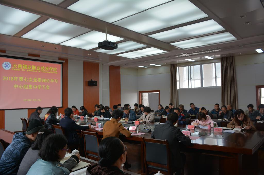 为深入贯彻习近平新时代中国特色社会主义思想和党的十九大精神,10月12日下午,职业学院党委理论学习中心组组织全院党员干部在三号教学楼五楼大会议室进行第七次集中学习。结合学院实际,围绕新时代新担当新作为、立德树人、党的组织工作和宣传思想工作进行了集体研讨。