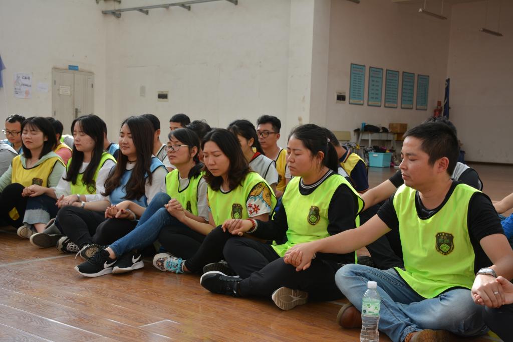 最后,在教官指导下,教师们通过“静心冥想”认真分析总结得与失结束了本次拓展训练活动。