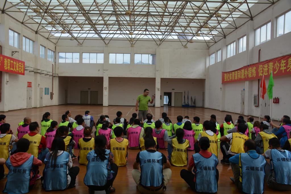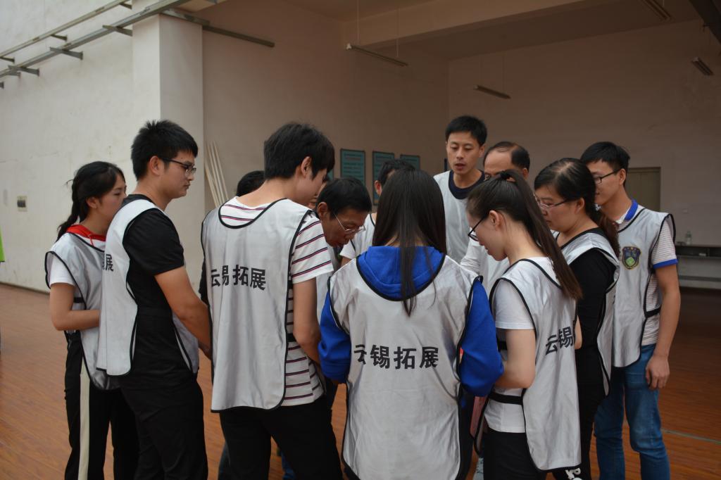 此次教师拓展训练以“团队训练”为切入点,训练包括“拓展介绍”、“暖身锻炼”、“团队建设”、“团队展示”、“集体训练”、“静心冥想”六个环节。