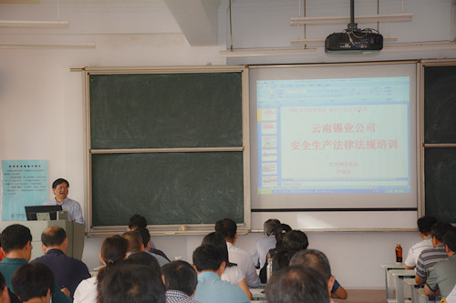 此次培训采用云南省安全生产宣教中心面授和云锡控股公司培训两种方式,培考分离。培训内容涉及安全生产法、应急管理、生产企业危害辨识、职业卫生管理、安全生产隐患排查、生产安全事故案例分析、地下矿山安全管理与技术、金属冶炼安全管理与技术、危险化学品生产(储存)企业安全管理与技术等。培训班邀请了省安监局原副局长白光福巡视员、国家安监总局、省安监局、省卫计委诊断鉴定委员会专家杨艳萍、州安监局副局长卢进宏、州安监局应急办主任海洋波及控股公司有关专家等为学员授课。