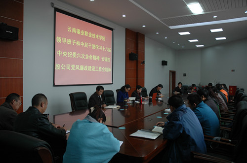 2016年2月15日上午9:00点,学院领导班子和中层干部以及部分教师代表在中会议室传达学习贯彻中纪委十八届六次全会精神、省委十二届六次全会和控股公司党风廉政建设工作会等会议精神。会议由学院党委副书记李梦主持。