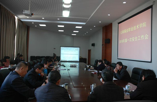 为贯彻落实控股公司2016年安全环保工作会精神,1月18日,职业学院迅速组织召开2016年第一次安全环保工作会。学院领导班子及中层领导干部参加会议,会议由学院常务副院长李建波主持。