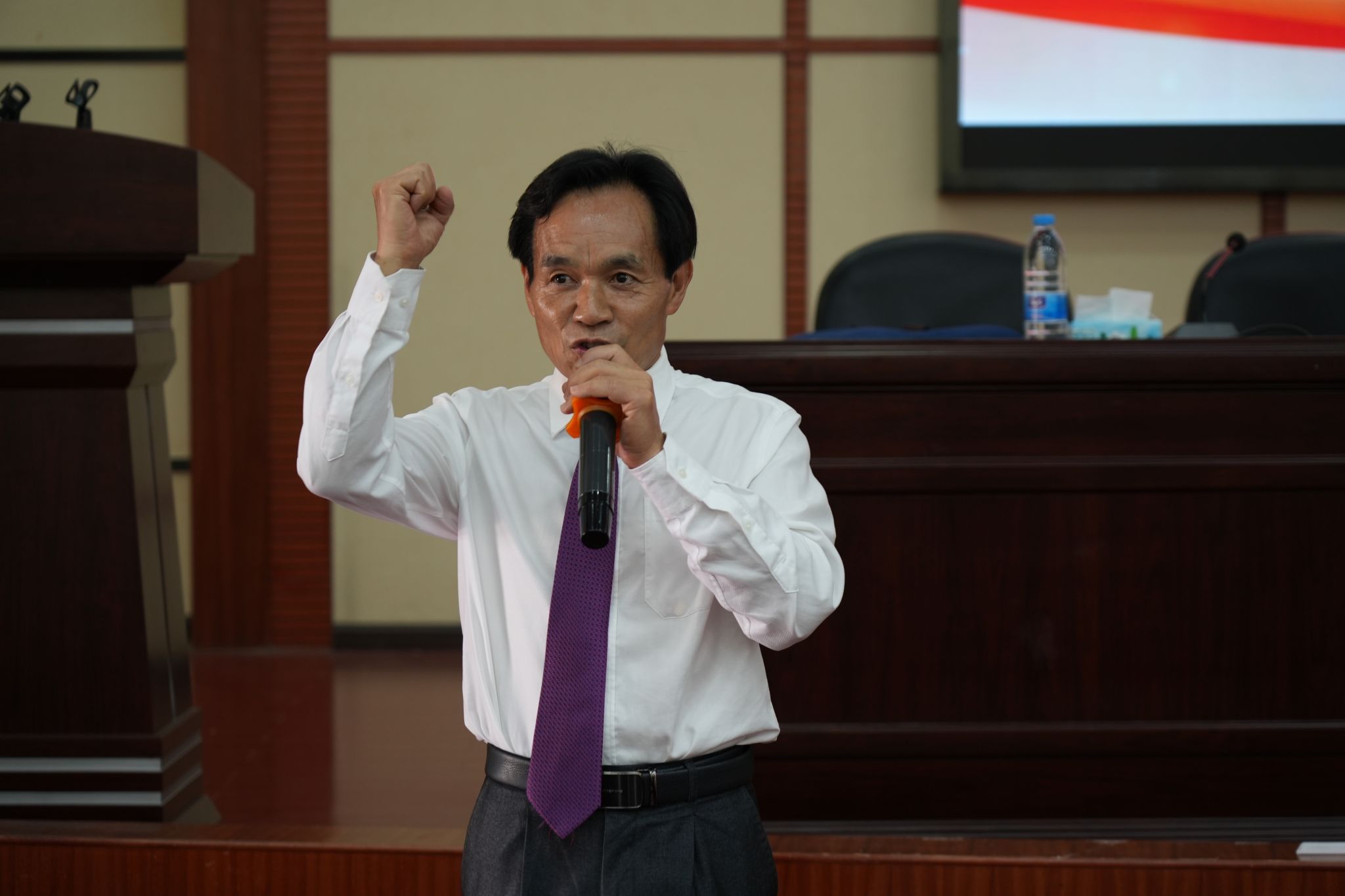 5月22日,学院在图书馆一楼报告厅开展知行大讲堂活动,学院银龄教师何跃林为130余名青年学子代表讲述党史。