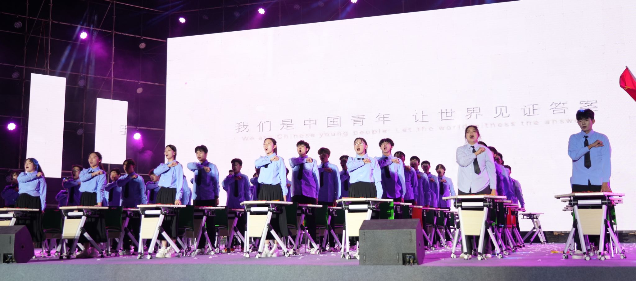 《浪漫樱花》《破茧》《星辰大海》《夜空中最亮的星》等节目,以饱满的情绪、整齐的动作和富有张力的表演,展现出青年学子勇于突破、追逐梦想的青春姿态;《筑梦·东方》《以青春之名,爱我中华》将爱国情怀融入每一次击掌与转身,用肢体语言深情表达对祖国的热爱与赞美;《次仁拉索》《西游记》《欢迎来到八零年代》则巧妙融合民族风情与经典叙事,或带领观众穿越时光,或传递吉祥祝福,尽显课桌舞在文化传承与艺术创新上的多元可能。十二支参赛队伍将力与美、创意与情感完美融合,用整齐划一的动作和昂扬的精神风貌,赢得了阵阵掌声。