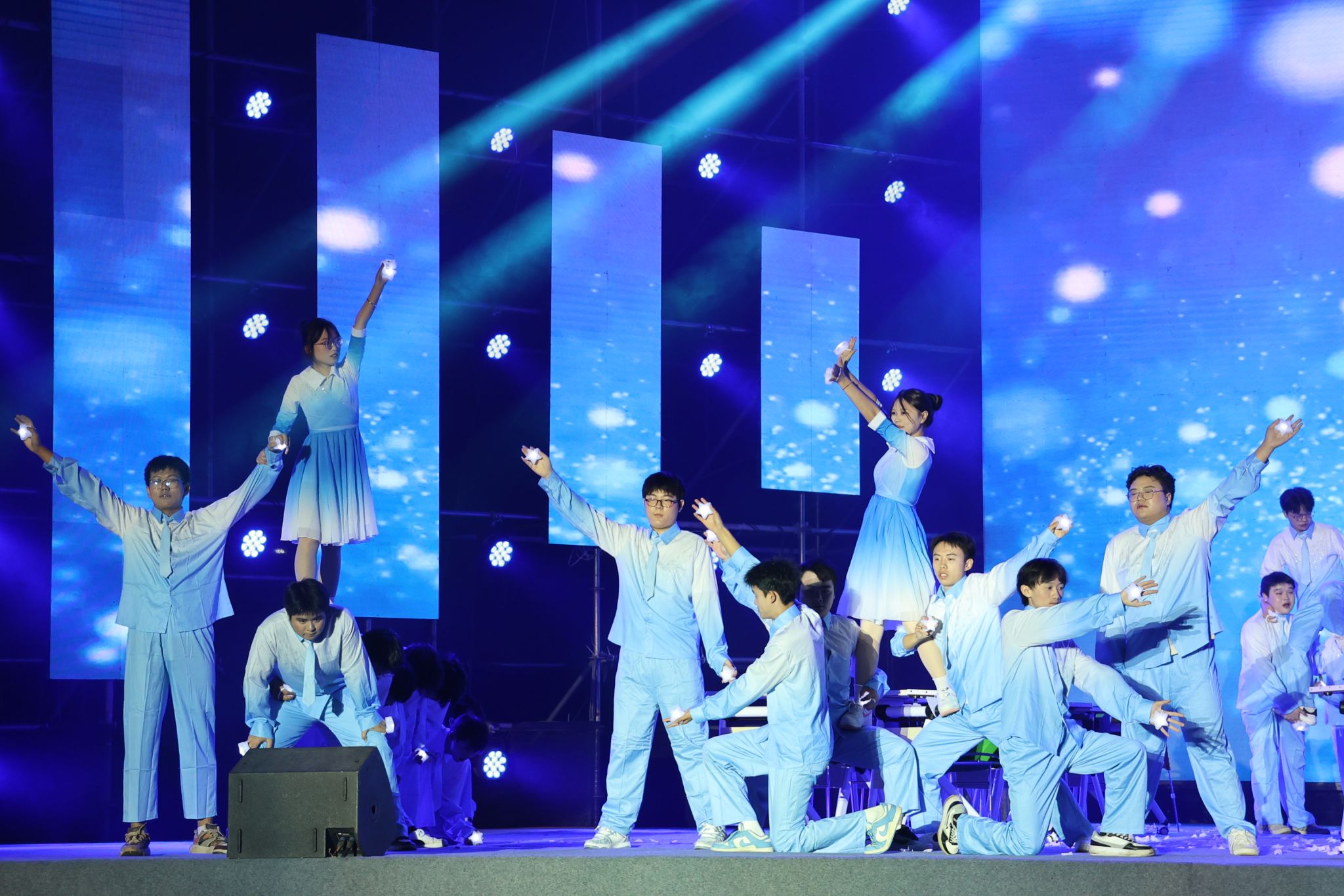 为全面加强美育工作,坚持以美育人、以文化人,丰富校园文化生活,9月28日晚,学院举行“活力校园 律动青春”课桌舞大赛,4300余名师生齐聚现场。