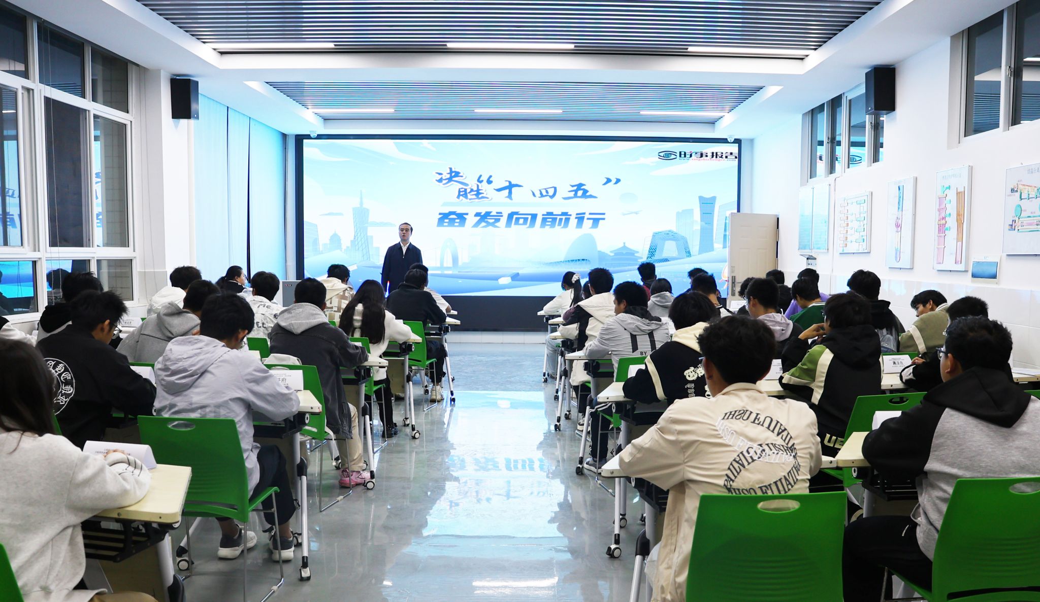 俞鑫通过详实数据和典型案例,阐述“十四五”时期我国经济社会发展取得的主要成就,回顾“十四五”时期发展的宝贵经验和深刻启示。面向“十五五”,他带领同学们分析国家发展面临的战略机遇与挑战,阐述新阶段的历史方位和重点任务。鼓励大家要准确把握时代脉搏,将个人成长融入国家发展大局,胸怀“国之大者”,将专业学习与服务地方经济社会发展紧密结合,培养战略思维,勇于探索创新,为迎接新征程贡献青春力量。