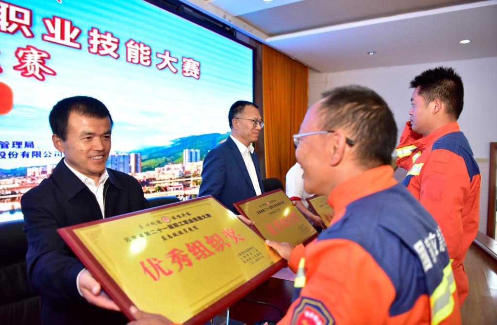 10月27日上午,云南省第二十一届职工职业技能大赛应急救援员竞赛闭幕式在学院508报告厅举行。省应急管理厅党委委员、副厅长王旭斌讲话。控股公司党委副书记、工会主席刘俊,党委委员、副总经理宋兴诚出席。