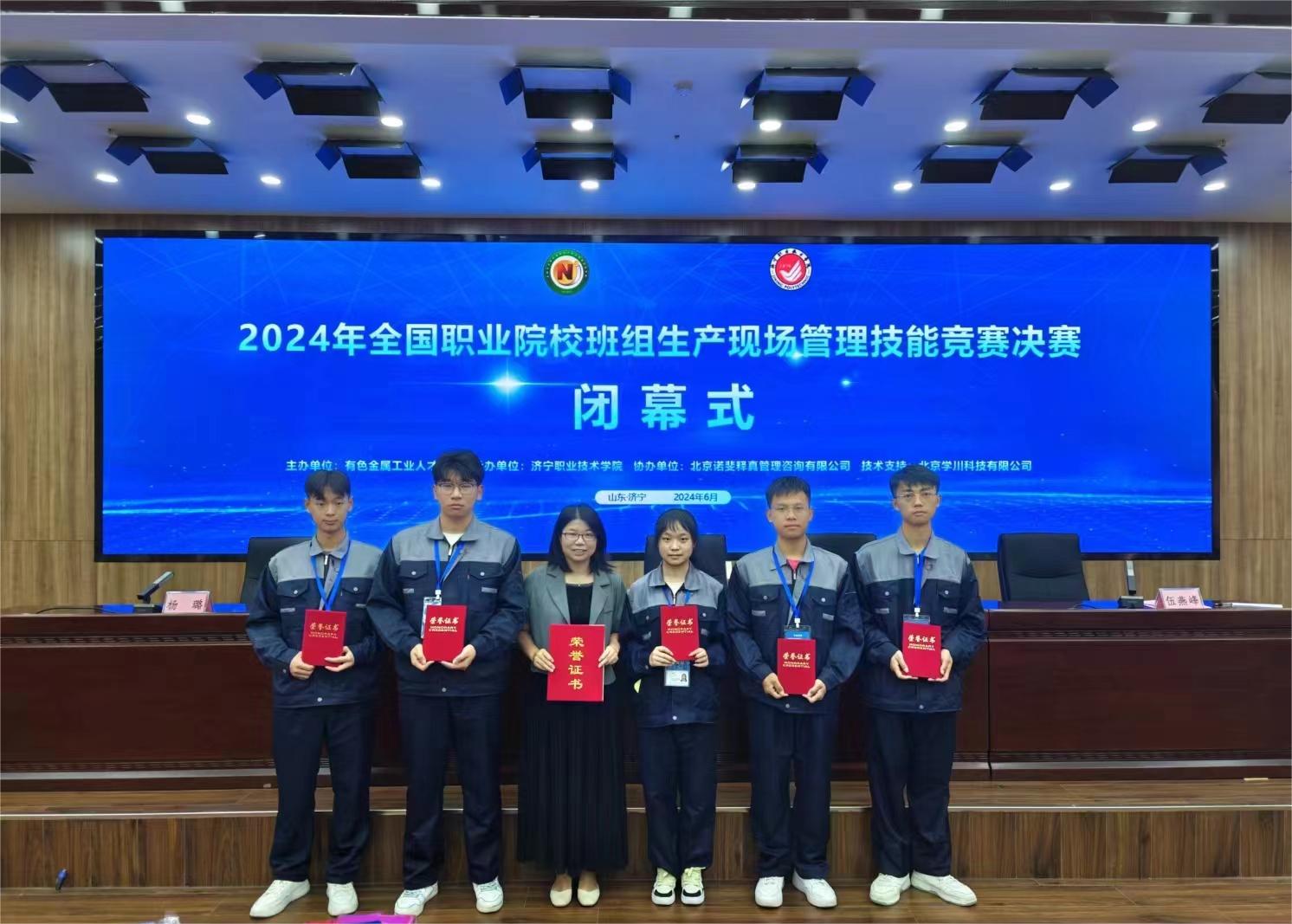 近日,学院在有色金属工业人才中心主办的“2024年全国职业院校班组生产现场管理技能竞赛决赛”中荣获团体三等奖,学生个人荣获二等奖3项、三等奖2项。