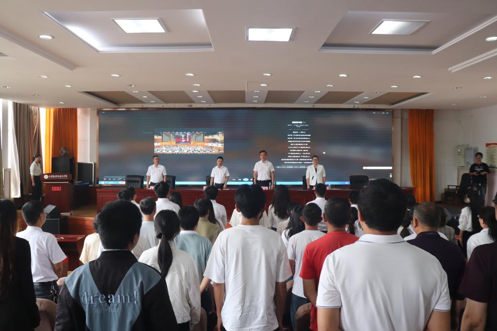 大会在庄严的国歌声中拉开序幕。