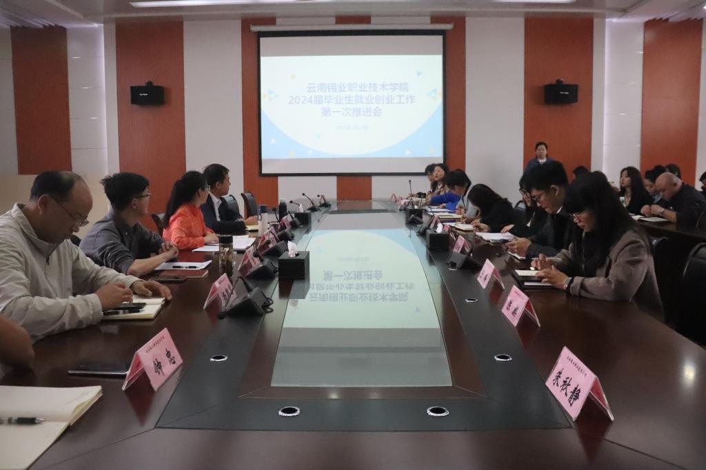 会上,传达学习了教育部办公厅《关于做好 2024 届全国普通高校毕业生就业创业工作的通知》文件精神,招生就业处解读了学院 2024 届毕业生就业创业工作方案并对2024届毕业生就业工作作了安排和部署,各二级学院对 2024 届毕业生的就创业工作做了交流发言。