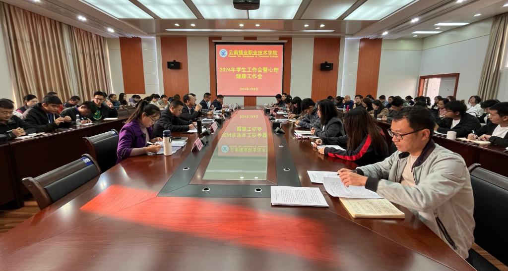 3月8日上午,学院在大会议室召开2024年学生工作会暨心理健康工作会,学院领导班子成员、各党支部书记、各部门主要负责人、学生管理专员、辅导员、团总支书记、班主任、学生代表共60余人参加会议。