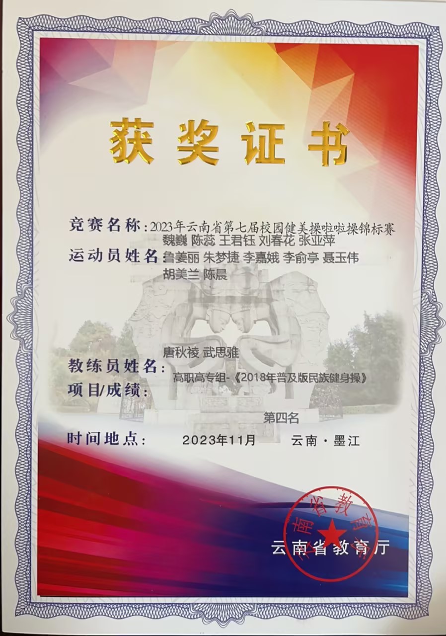 学院16名运动员参加本次比赛,唐秋祾担任领队,在武思雅、唐秋祾两位教练的指导下,学院夺得公开青年丙组《花球规定动作(2020版)-0级》第二名、高职高专组《2018年普及版民族健身操》第四名、公开青年丙组《第三套校园啦啦操示范套路》获得第五名。