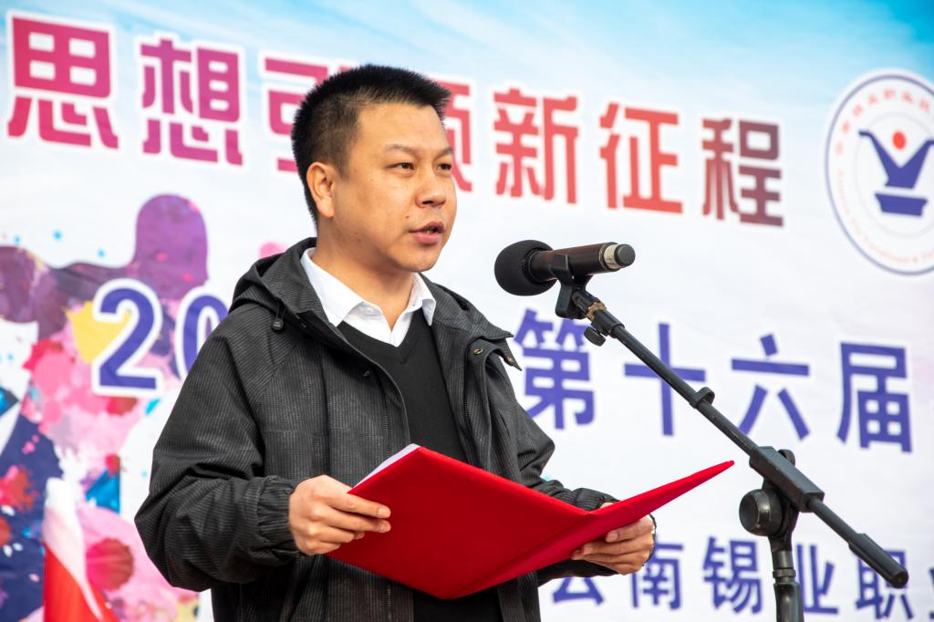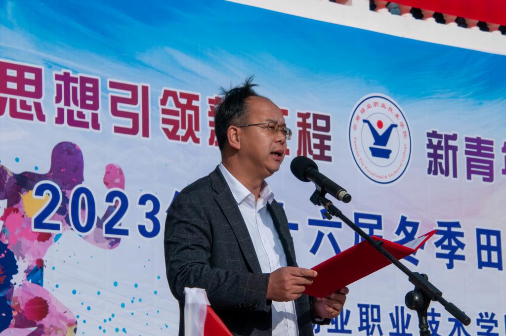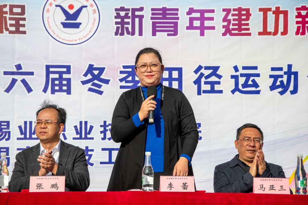 学院党委副书记、院长李蕾宣布云南锡业职业技术学院第十六届冬季田径运动会开幕。