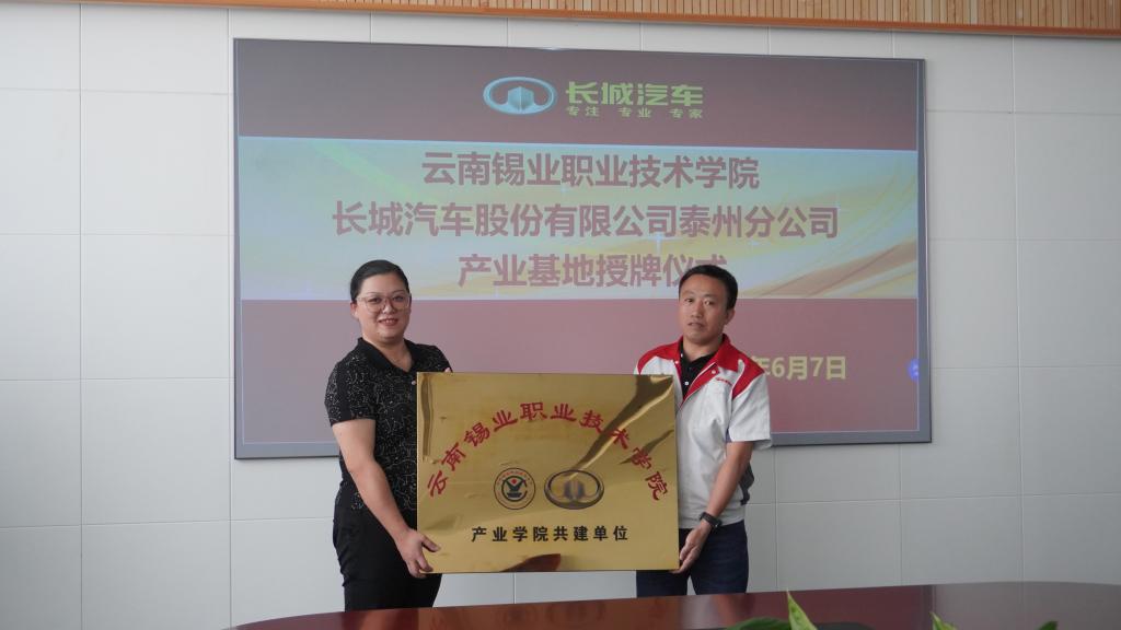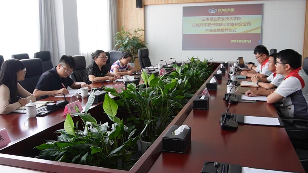 为进一步深化产教融合、校企合作,全力促进学院2023届毕业生更高质量充分就业,6月7日,学院党委副书记、院长李蕾率队一行6人赴长城汽车股份有限公司泰州分公司参加产业学院授牌仪式,并前往蜂巢动力系统(江苏)有限公司进行访企拓岗,校企双方就人才培养、产教融合、学生实习与就业等事项进行了深入座谈交流。