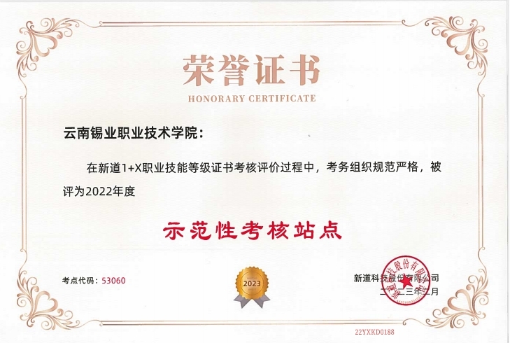 近日,学院被新道科技股份有限公司(该司是教育部职业教育发展中心所确定的业财一体信息化应用1+X职业技能等级证书的培训评价组织)评为1+X职业技能等级证书“示范性考核站点”,文理学院教师王宇超、李荣获“优秀指导教师”称号。