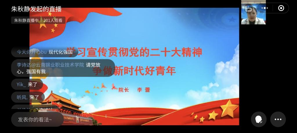 学院院长李蕾以“学习宣传贯彻党的二十大精神,争做新时代好青年”为题,强调学习贯彻党的二十大精神,要把握其重要论断,要知行合一,要牢记习近平总书记的嘱托,要牢记使命与担当。