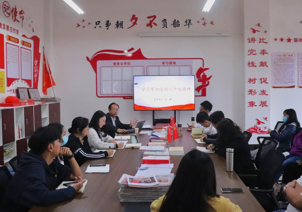 11月25日,职业学院党委书记张鹏到教学管理党支部宣讲党的二十大精神,教学管理党支部党员和大学生理论宣讲团、青年马克思主义协会代表参加。