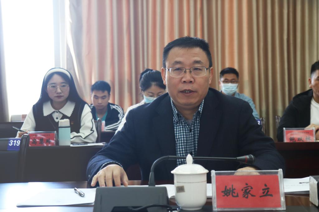 姚家立要求,一要按照习近平总书记提出的“三个全面”的要求,抓好首要政治任务。“三个全面”是一个有机整体,既是方法论也是动员令,落实好“三个全面”的要求就是落实党的二十大报告中学思用贯通、知信行相统一的要求。坚持“四步曲”学习贯彻党的二十大精神,即知道、理解、认同、行动,具体到一次学习交流活动中就是要有明确的学习内容、深刻的思考感悟、具体的工作措施、有力的实际行动,以行动成效检验学习成效。二要创新开展学习研讨,抓实学习宣传贯彻工作。党的二十大报告内容博大精深,要按照《中共中央关于认真学习宣传贯彻党的二十大精神的决定》,积极开展学习研讨活动,有组织地开展宣传活动,有计划地纳入培训,思想政治理论课教师要立即行动,做好选题,开展好集体备课,先学一步,学深一层,着力提升宣讲能力,分层分众鲜活讲好党的二十大精神,确保党的二十大精神进校园、进教材、进课堂、进头脑。