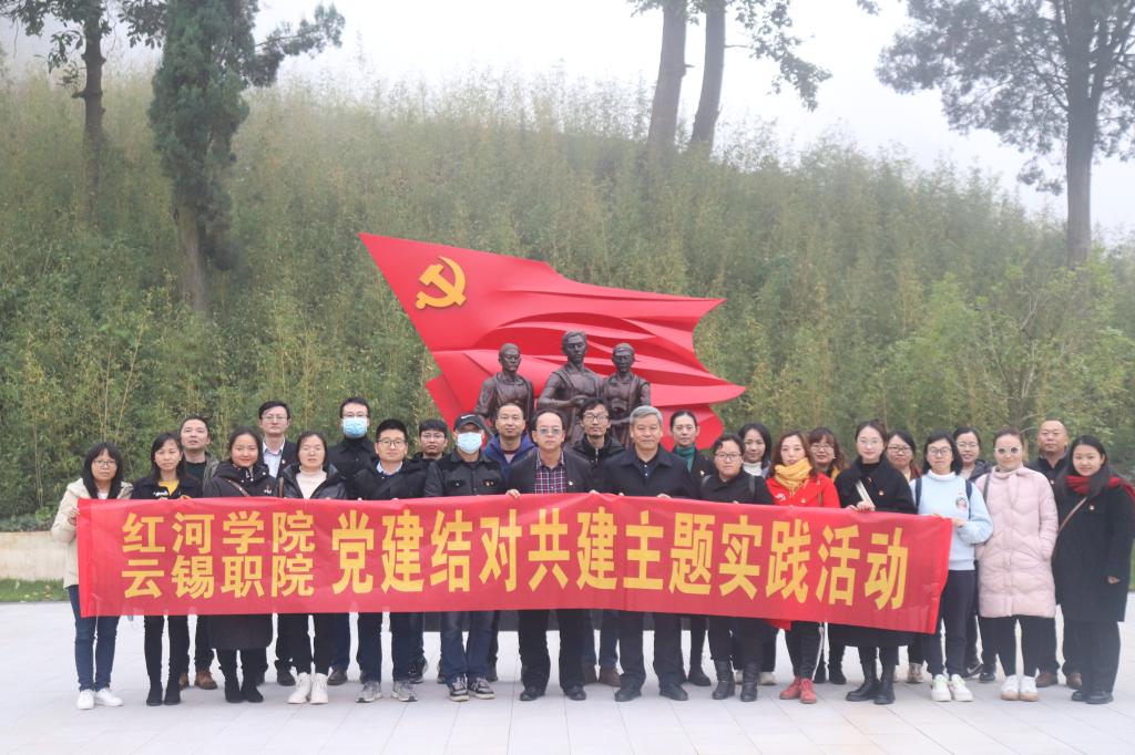 实施“结对”工程,结对共谋发展。制定了《红河学院与云锡职院党建结对实施方案》,开展了“四个一”交流互动,提升了工作质量。与昆明理工大学、红河学院、玉溪师范学院、昆明工职院、红河卫生职业学院等高校开展党建“手拉手”活动,加强思政教师、党务工作者和学生之间的沟通交流。组织师生与红河学院师生联合开展主题党日活动,进一步增强学习教育的针对性和实效性。学院综合管理党支部和个旧市鄢棚社区七八九组党支部结对,组织师生参与干部规划家乡活动,引导广大师生崇德向善。
