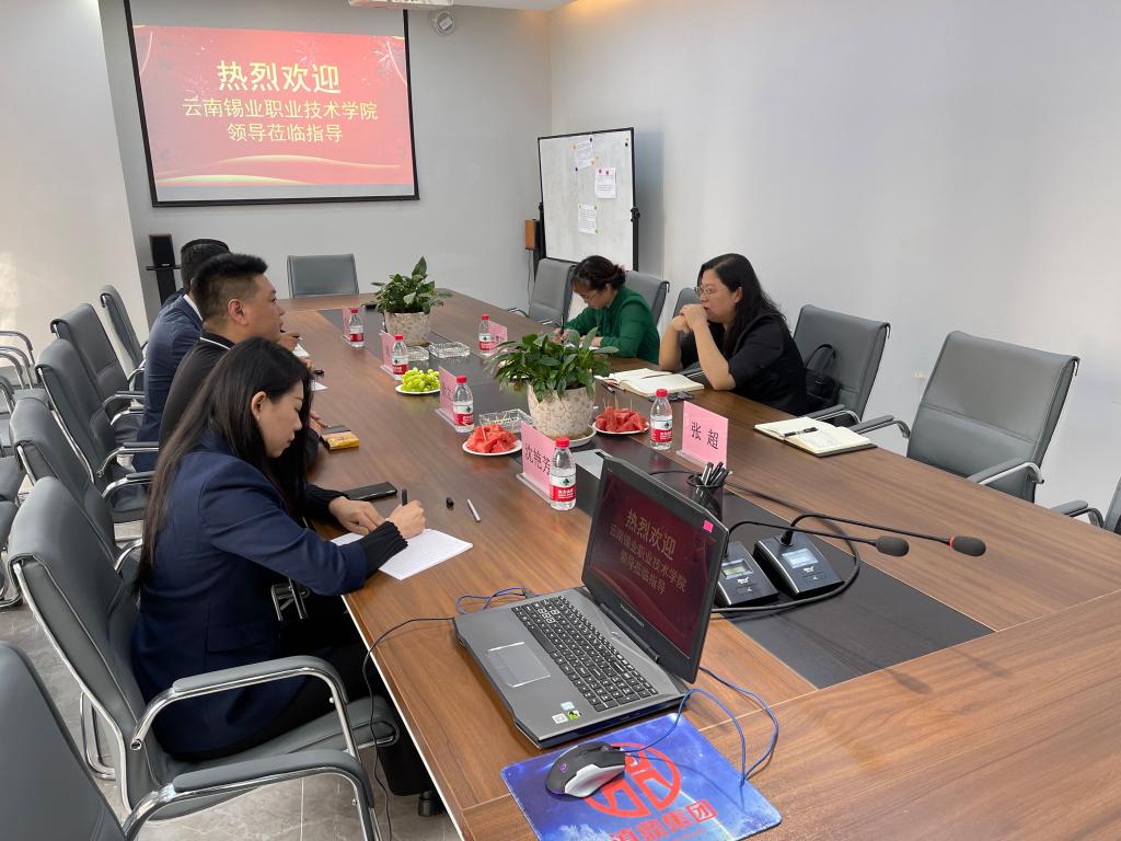 学院领导首先参观了云南滇鼎教育投资集团有限公司,集团董事长徐立志对公司的企业文化、经营理念、办学机制等做了详细介绍,描绘了企业未来发展的规划蓝图。接着,校企双方围绕“深入产教融合、打造产业学院”举行了交流座谈会。