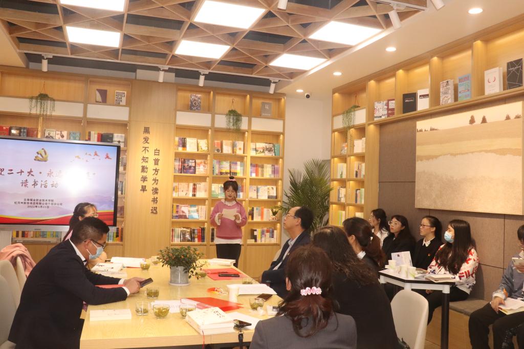 4月23日,学院在图书馆校园阅读栈举办“喜迎二十大·永远跟党走”读书活动,推动全民阅读、建设书香校园。红河州、个旧市新华书店负责人,学院党政领导、各部门负责人、学生代表参加了活动。