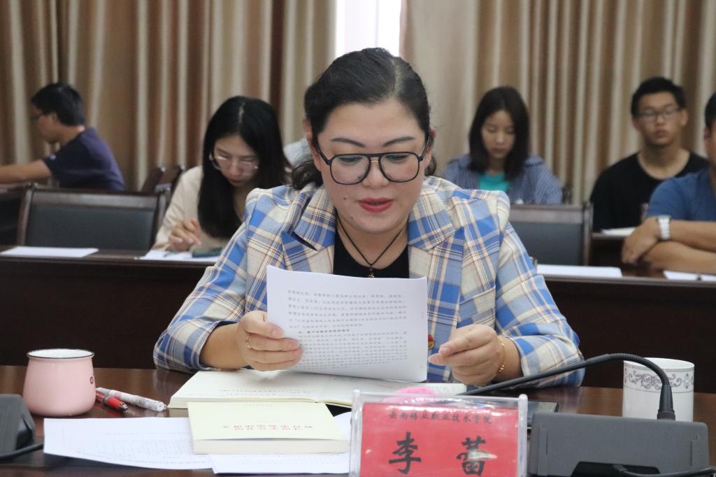 控股公司党委中心组理论学习列席旁听工作组成员、老厂分公司党委副书记马辉一行到会指导,学院党委书记张鹏主持会议,学院院长李蕾、副院长曲向哲、张惠芬进行了中心发言。