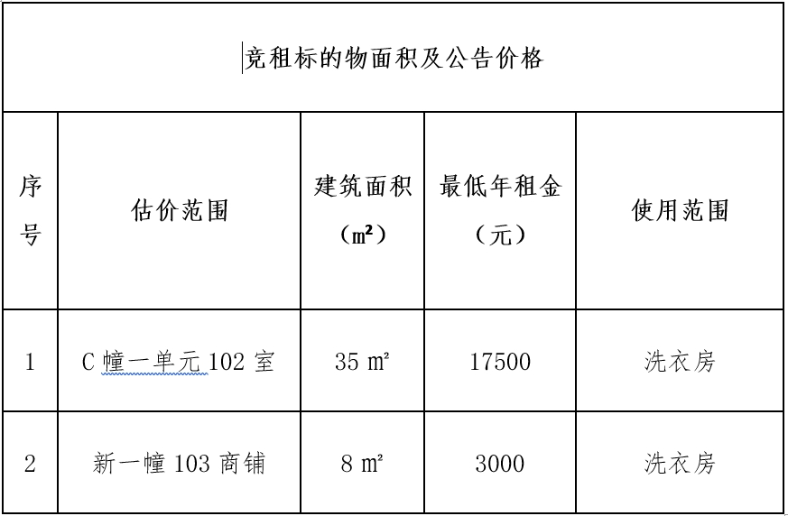 3.公开招租设最低年租金,竞租人从租赁底价开始竞价,加价幅度:序号1为500元/次,序号2为100元/次,上不封顶。报价延时时间为2分钟,2分钟内无人再次竞价,以最高竞价者为承租人。