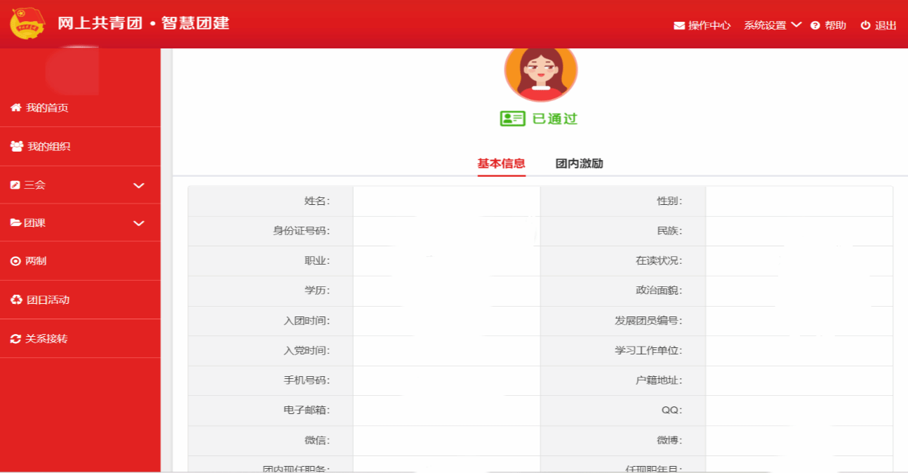 2、团员身份认证,与身份证认证无关,需要查看团员《入团志愿书》是否上传、是否完成审核。