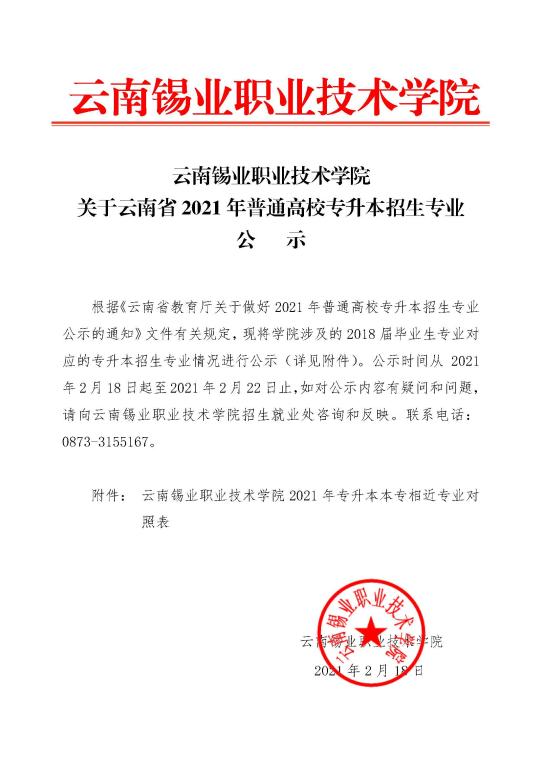 附件:云南锡业职业技术学院2021年专升本本专相近专业对照表.pdf