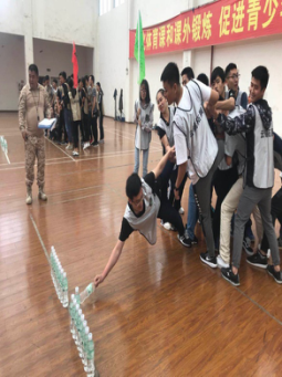 随后团队以队伍对抗的形式完成了“智拆炸弹““贪吃蛇”“神奇的A4纸”“黑暗中的正方形”和“保卫首长”项目。其中“智拆炸弹”项目放松了紧张的气氛让初次相聚一堂的队员们打开彼此心扉,建立队员间起相互协作共同应对挑战的信心;在“贪吃蛇”项目培养了队员听从指挥,不断改进的心态以及善于学习、总结,积极有效的把握信息、主动出击把握机会的能力“;神奇的A4纸”项目让队员们突破原有思维的局限,培养创新意识;“黑暗中的正方形”项目让队员们意识到沟通的方法有很多,有效沟通在一定程度上决定着结果走向。“保卫首长” 增强队员们相互合作的整体意识,充分熔炼与提高参训学员的奉献精神。
