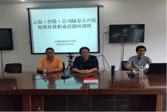 2018年6月14日,云锡控股公司精准扶贫办和学院创新创业平台精准扶贫项目工作,组织学院实习实训中心副主任王海老师和李跃老师、职业技能培训鉴定处张老师前往绿春县大兴镇举办“精准扶贫职业技能培训班”,得到了绿春县大兴镇综治办和安监站的好评。