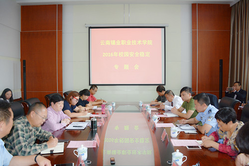 5月30日下午,职业学院在小会议室召开2016年校园安全稳定专题会。