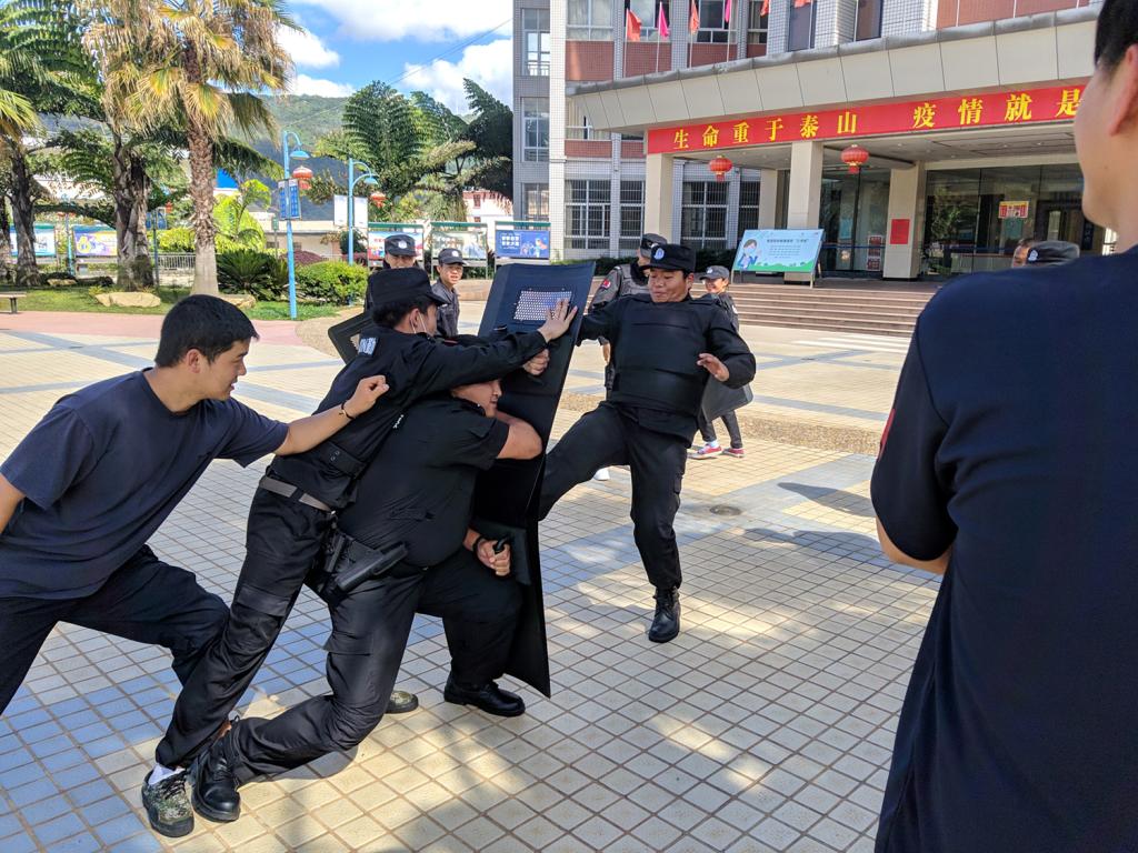 为切实加强学院反恐防暴及应急处突能力,结合当前严峻的反恐维稳形势,6月12下午,学院安全保卫处邀请个旧市公安局教官对保卫老师、物业保安和护校队员开展了反恐防暴技能培训。此次培训内容包括日常安防意识培训、盾棍组合最小单元技战术培训、近身防卫术培训以及反恐实战对抗演练。培训过程中,教官以案示例,以现场教学、交流互动、实战对抗、随机应变等方式,详细讲解了反恐应急处突器械的主要使用方法,对参训安保人员反恐...