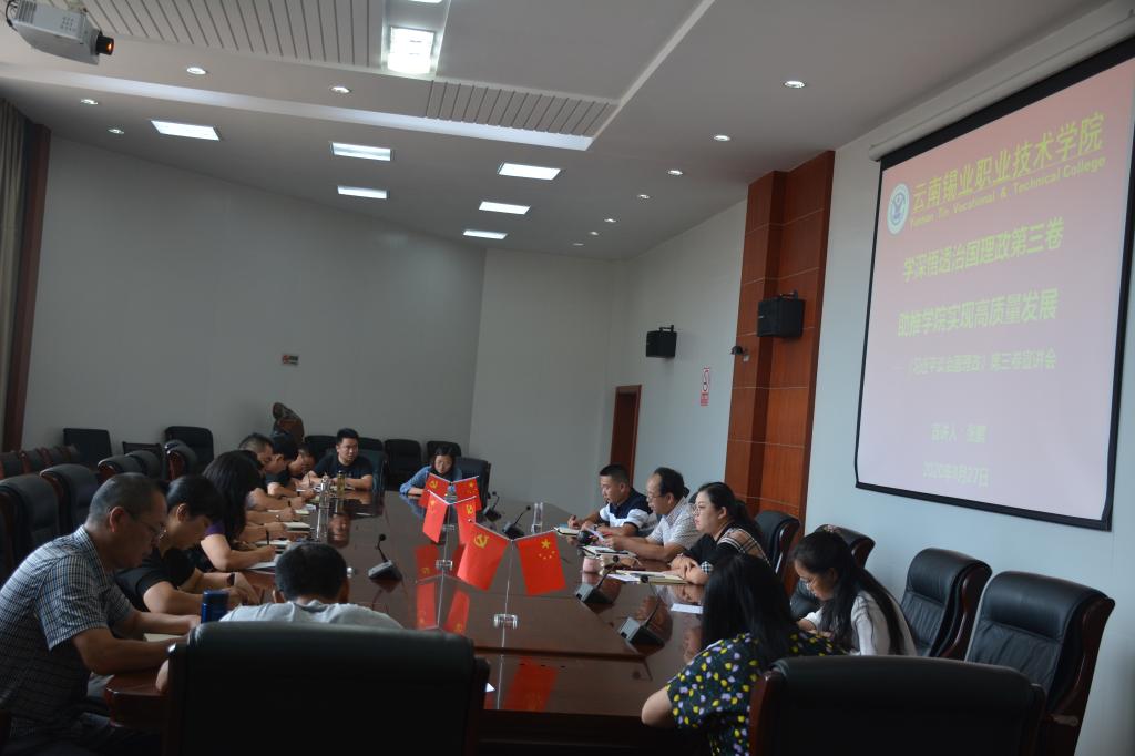 8月27日上午,学院党委在3号教学楼中会议室召开《习近平谈治国理政》第三卷宣讲会,深入学习贯彻习近平新时代中国特色社会主义思想。学院党委书记张鹏作了题为《学深悟透治国理政第三卷 助推学院实现高质量发展》的宣讲。张鹏谈到,前不久出版的《习近平谈治国理政》第三卷,收入了自2017年10月18日党的十九大至2020年1月13日期间习近平总书记的重要著作92篇,生动记录了这一时期党和国家各项事业取得新的重大进展的伟大实践,...