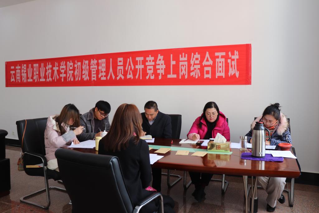 1月14日,云锡职院公开竞聘初级管理人员面试工作拉开帷幕。19名来自学院各部门参加公开竞聘的人员,通过报名资格审查后,在学院教学楼五楼面试现场进行了应聘演讲和综合能力面试。此次公开竞聘是按照《云南锡业集团(控股)有限责任公司初级管理人员选拔管理工作办法》和《云锡职业技术学院公开选拔初级管理人员实施方案》的相关要求,结合学院深化改革和优化组织架构工作需要,对纪检监察室初级管理人员副职、学生工作处初级管理...